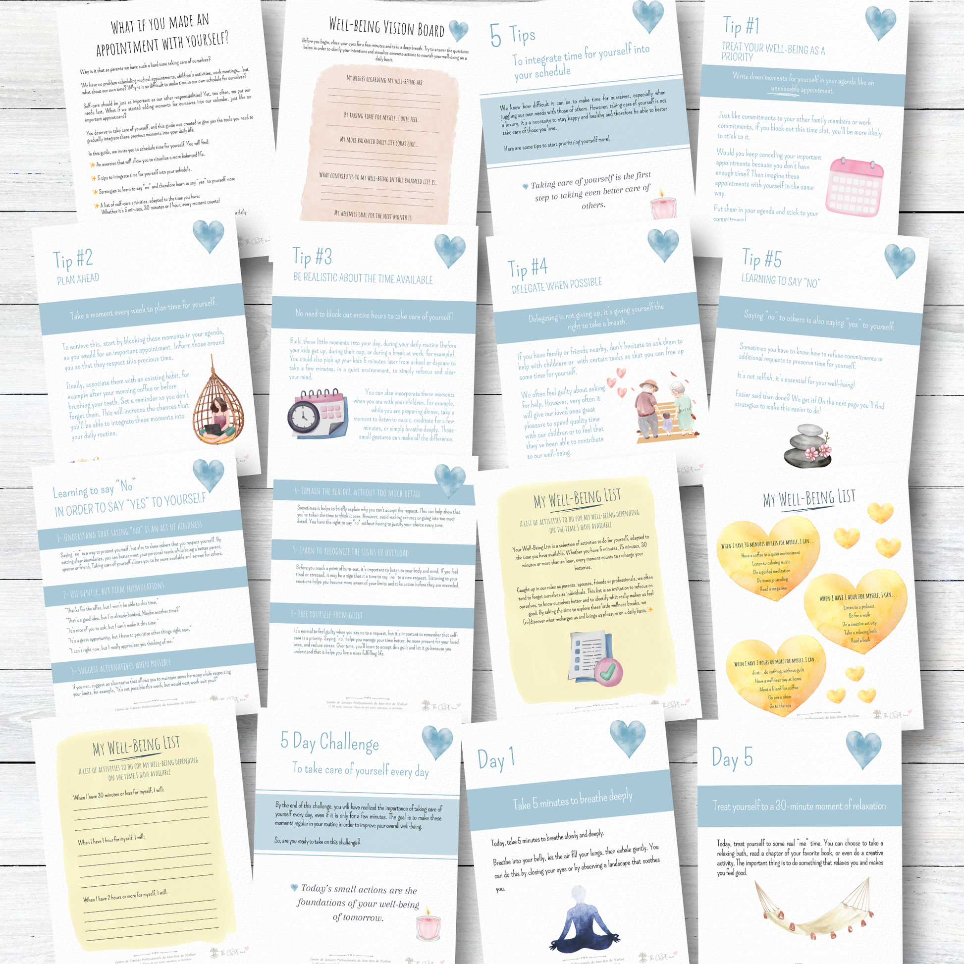As a parent, it’s easy to forget to take care of yourself amidst daily responsibilities. Finding time for your own well-being can therefore be quite a challenge… This guide has been specifically designed for you, to help you regain balance, nurture your well-being, and incorporate moments for yourself into your routine!